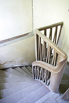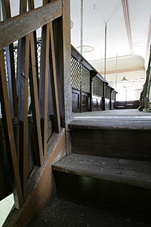 Treppe zum Betsaal, im Hintergrund die Treppe zur Empore |